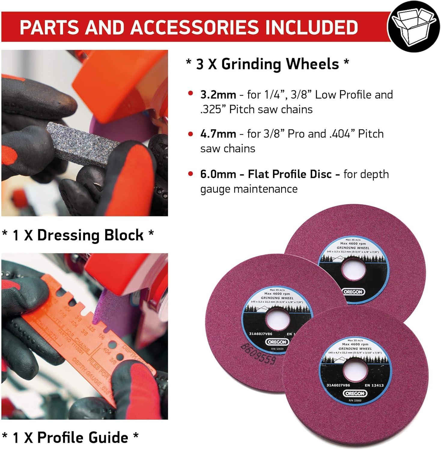 Oregon Chain Sharpener Grinding Wheel – 3/16in. Thickness, for .325in.-Pitch (20, 21, 22, 95 Series Chains only), 3/8in.-Pitch (All Except 90, 91 Series Chains) and .404in.-Pitch Chain(5-3/4″ x 1/4″)