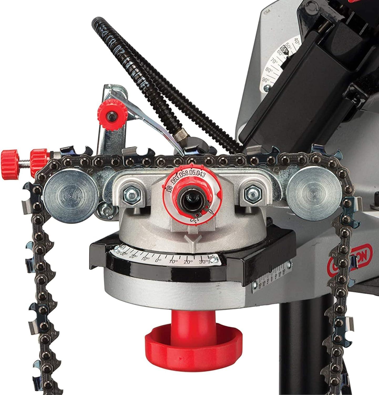 Oregon Tripod Bench Chainsaw Chain Grinder Stand, Height Adjustable Sturdy Portable Safe Platform, Folds Down for Use Anywhere, Compatible with All Oregon Bench Grinders (554532),Black, Red