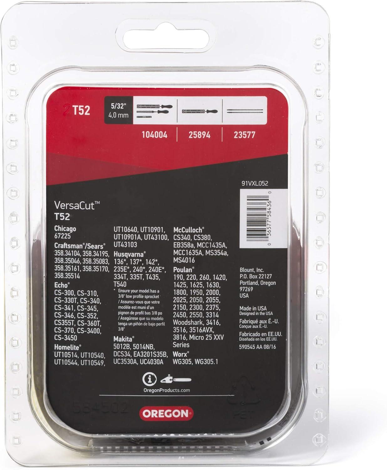 Oregon Chainsaw Chains, 3-Pack 3/8″ Low Profile pitch, .050″ (1.3 mm) Gauge VXL Semi Chisel Replacement Chainsaw Chain for 14-Inch Bar, 52 Drive Links, fits Husqvarna, Makita, Craftsman & more (T52X3)(1-Pack)
