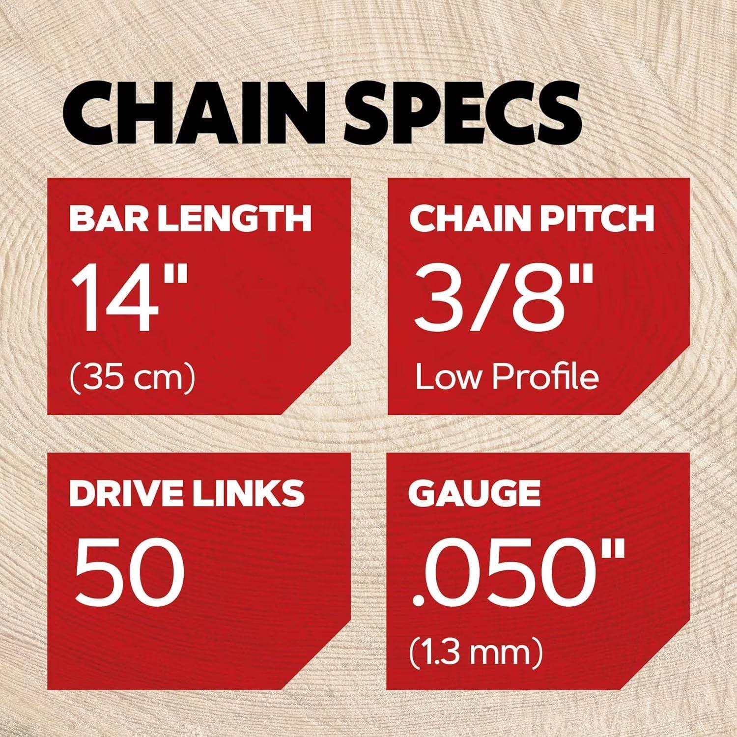 Oregon Chainsaw Chains, T50 3-Pack 3/8″ Low Profile Pitch, .050″ (1.3 mm) Gauge VXL Semi Chisel Replacement Chainsaw Chain for 14-Inch Bar, 50 Drive Links, fits Stihl, McCulloch & Remington (T50X3)(3-Pack)