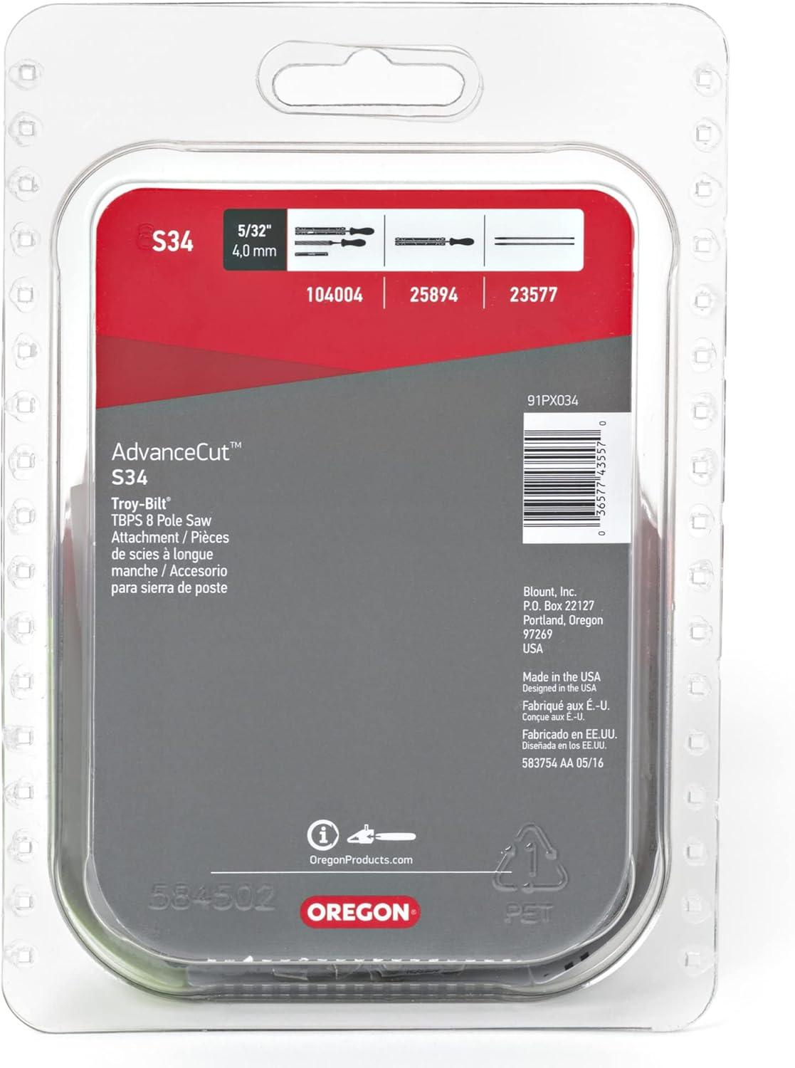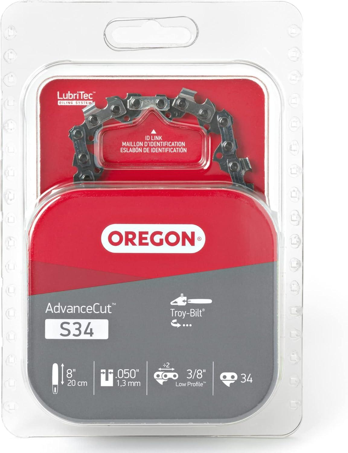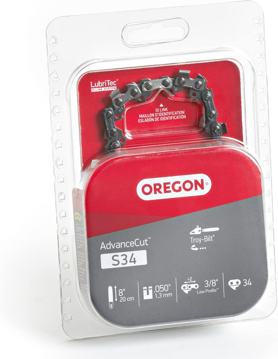 Oregon S34 AdvanceCut 8-Inch Replacement Polesaw Chain, 8″ Guide Bar, 34 Drive Links, Pitch: 3/8″ Low Vibration, .050″ Gauge, Fits Troy-Bilt Pole Saw