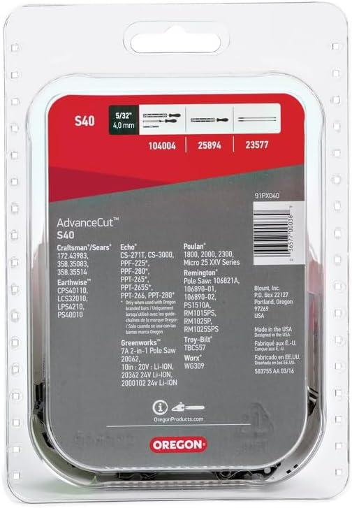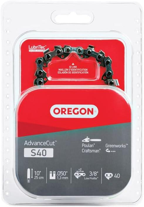 Oregon S40 AdvanceCut Chainsaw/Pole Saw Chain for 10-Inch Bar, 40 Drive Links, Low-kickback, Fits Echo, Sun Joe, Greenworks and more, Brown/a(Chainsaw Chain)