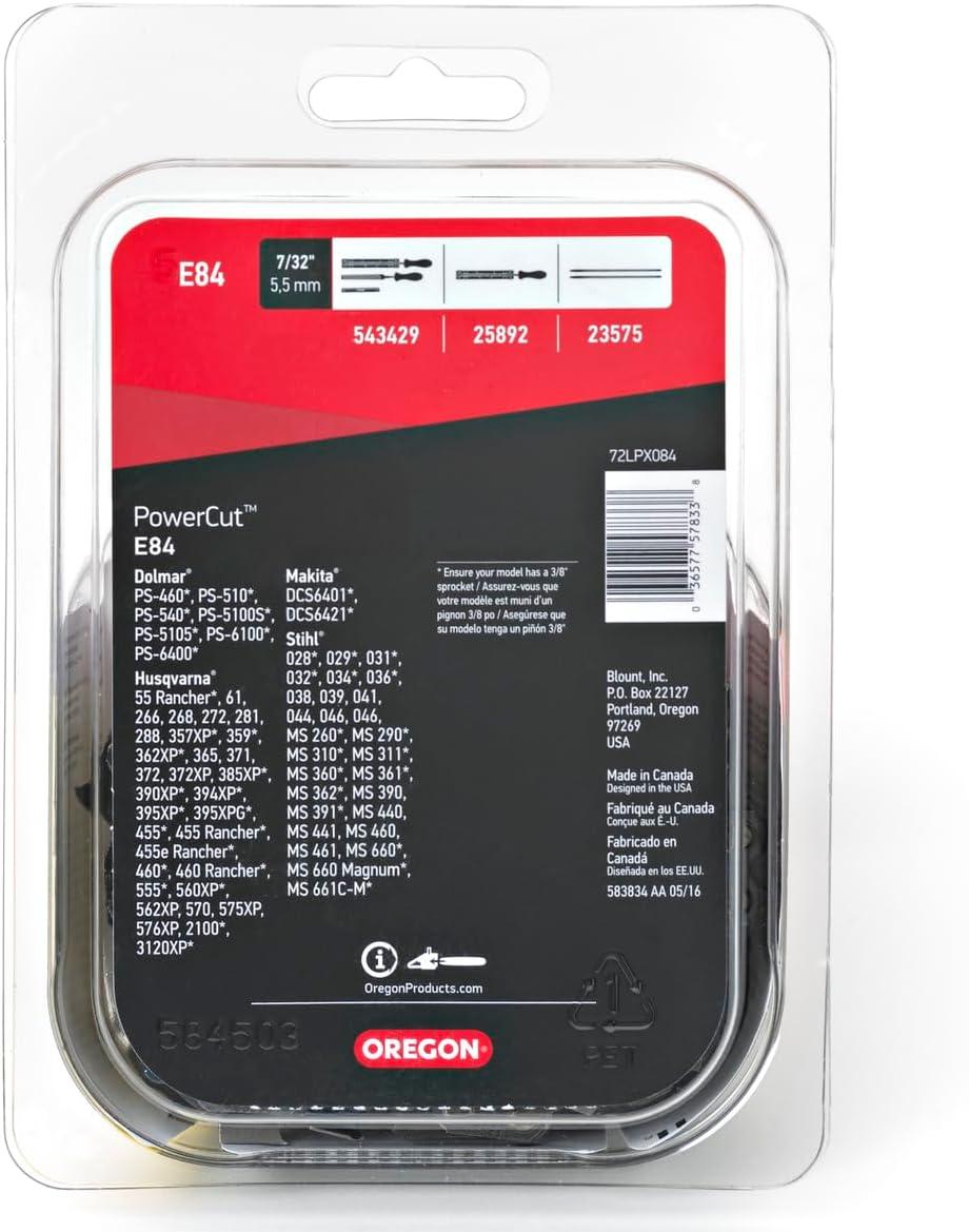 Oregon E84 Full Chisel Professional Chainsaw Chain for 24″ Bar, 84 Drive Links, .050″ Gauge, 3/8″ Pitch, 72EXL, Fits Husqvarna, Stihl(LPX PowerCut Chain (Original))