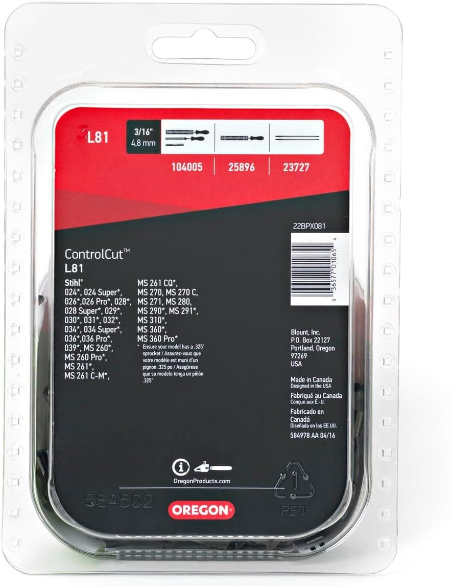 Oregon L81 ControlCut Chainsaw Chain for 20-Inch Bar, 81 Drive Links, Low-kickback chain, fits several Stihl models Gray(L81/22BPX (Micro Chisel version))