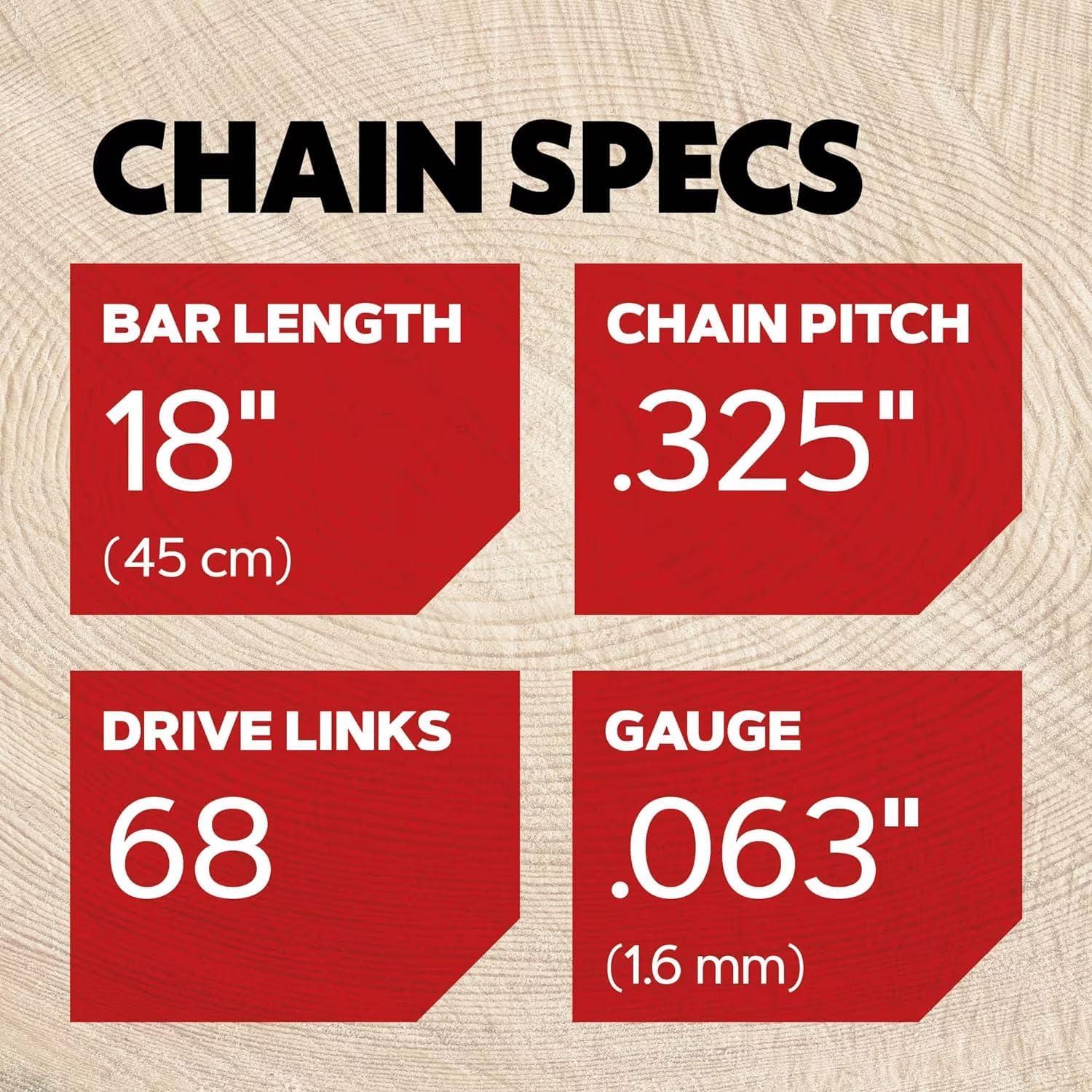 Oregon V81 PowerCut Chainsaw Chain for 20-Inch Bar, 81 Drive Links, .325″ Pitch, .063″ Gauge (22LPX081G),Grey(18″ 68DL .325″ .063″)