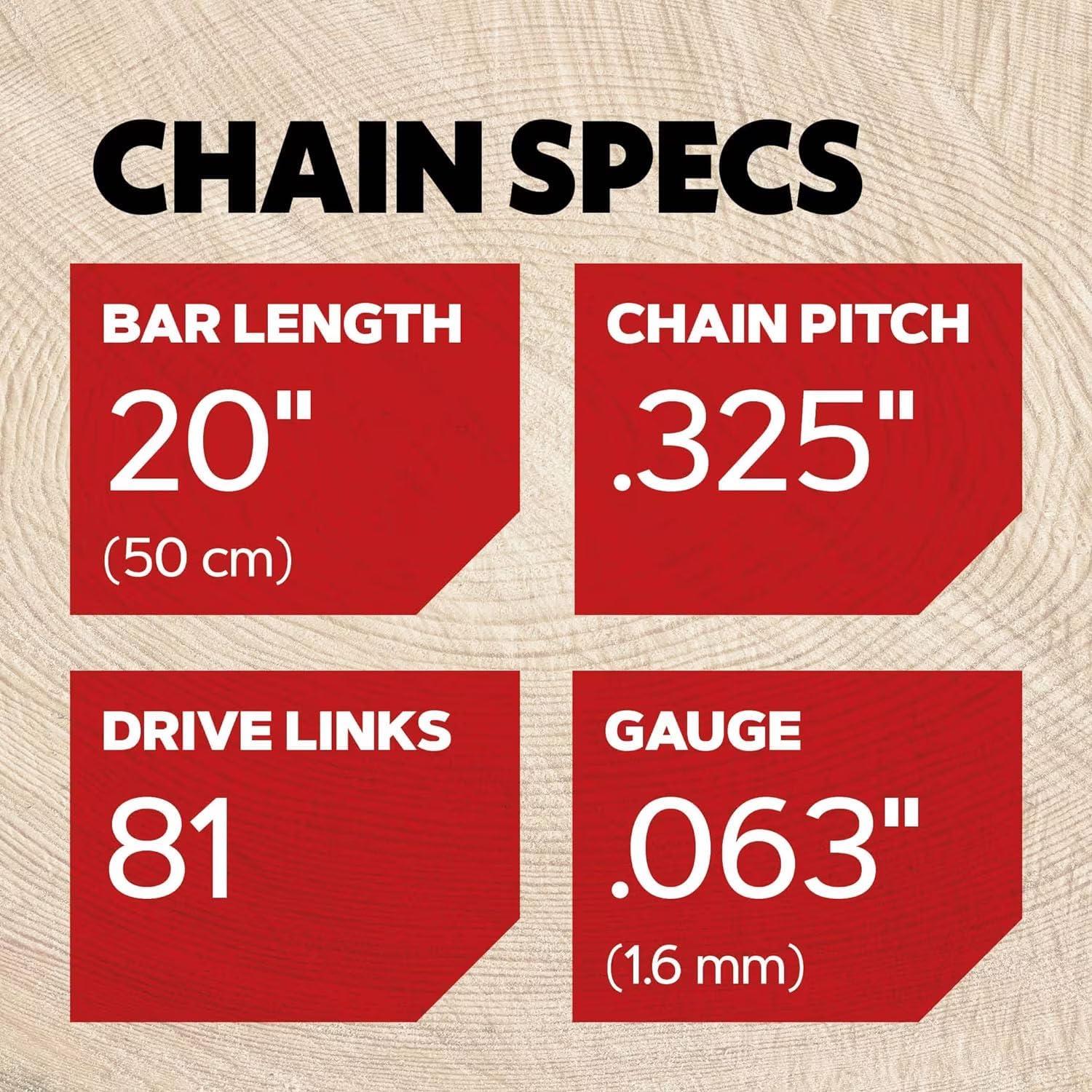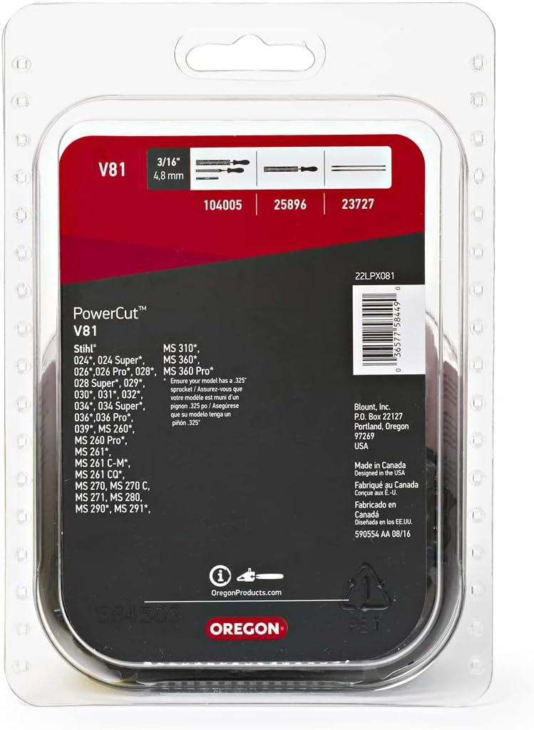 Oregon V81 PowerCut Chainsaw Chain for 20-Inch Bar, 81 Drive Links, .325″ Pitch, .063″ Gauge (22LPX081G),Grey(1-Pack 20″ 81DL .325″ .063″)