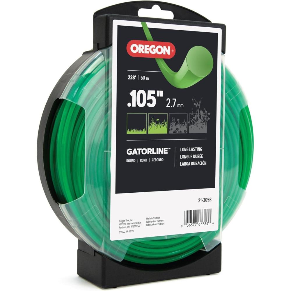 Try our commercial grade Oregon Gatorline Trimmer Line. With a .105-inch gauge this long lasting premium co-polymer material comes in a 5-pound spool. Fitting all standard trimmer heads, this trimmer line is user friendly and is designed to limit tangles. It has a round design and green color.