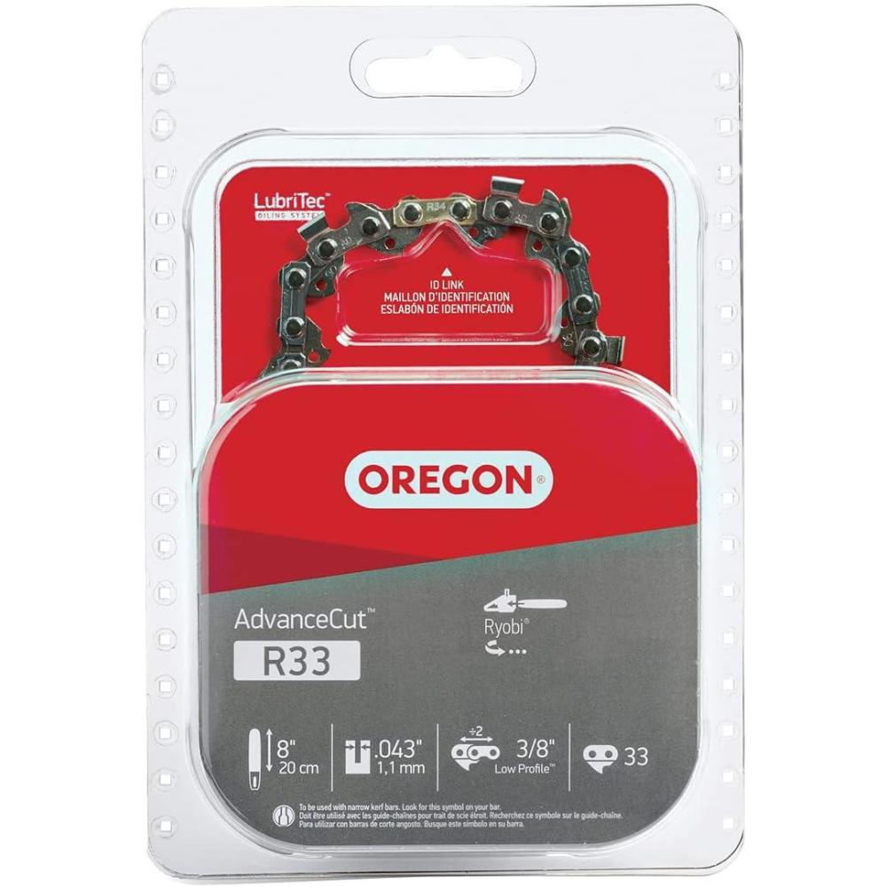 Oregon AdvanceCut Chainsaw Chain, 3/8″ LP Pitch, 0.43″ Gauge, 33 Drive Links, Replacement Chainsaw Chain for 8-Inch Bar, for Pole Saws & Chain Saw Tools, Replaces Stihl & Husqvarna (R33)