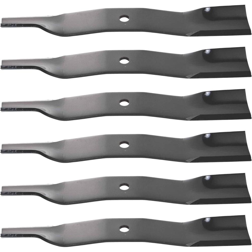 Pack of six Oregon Original Manufacturers Equipment Replacement Blades #92-048. (3) for 54″ cut, ZG2354, GR2120. Replaces OEM: K5617-34330 K5617-97530 Specs: Length: 18-5/8″. Center Hole: 11/16″. W/T: 2.5. Lift: 1-1/8. Thickness: 0.250. Offset: 1/2. 6 pack of blades included.