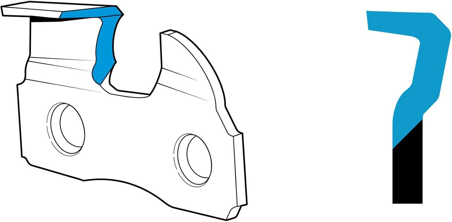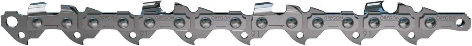 The Oregon AdvanceCut S34 replacement 8-Inch Polesaw Chain is designed to fit the Troy Bilt Pole Saw TBPS, and features a 34 drive link chain with 3/8-inch pitch and .050-inch gauge. These specifications make it perfect for homeowners and landscaping professionals who occasionally cut tree branches, delivering a high standard of durability and performance and all-around ease of use. The durable chrome outer layer and hardened rivets prevent wear and reduce the need for chain adjustments, while the semi-chisel cutters enable it to power through timber with an excellent degree of speed. For saw sizes up to 42 cc. This saw chain meets the kickback performance requirement of ANSI B175.1-2012. Features LubriTec – Oregon's next-generation oiling system, designed to extend the guide bar and saw chain life. Compatible with the Troy Bilt Pole Saw TBPS. Can be used as a replacement for the following chainsaw chains: Husqvarna H37-34 Stihl 63PM334E Saw chain identification: Always refer to the number stamped on the drive link of your old chain to assure correct gauge and pitch, or refer to your owner’s manual, to order the correct part to fit your saw chain. • Chain gauge is the drive link's thickness where it fits into the guide bar groove, matching the guide bar gauge • Chain pitch is the size of the chain and is defined as the distance between any three consecutive rivets divided by 2 • Your guide bar length is stated in the manual, and is the length of the long bar from end to tip (not the full length of the chainsaw). See Oregon’s fitting guide.