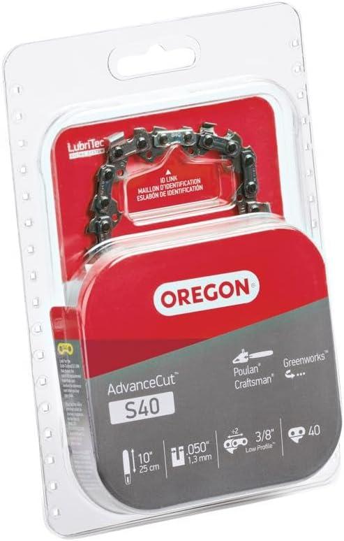 Oregon S40 AdvanceCut Chainsaw/Pole Saw Chain for 10-Inch Bar, 40 Drive Links, Low-kickback, Fits Echo, Sun Joe, Greenworks and more, Brown/a(Chainsaw Chain)
